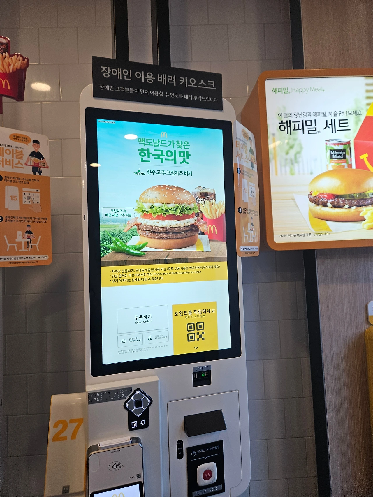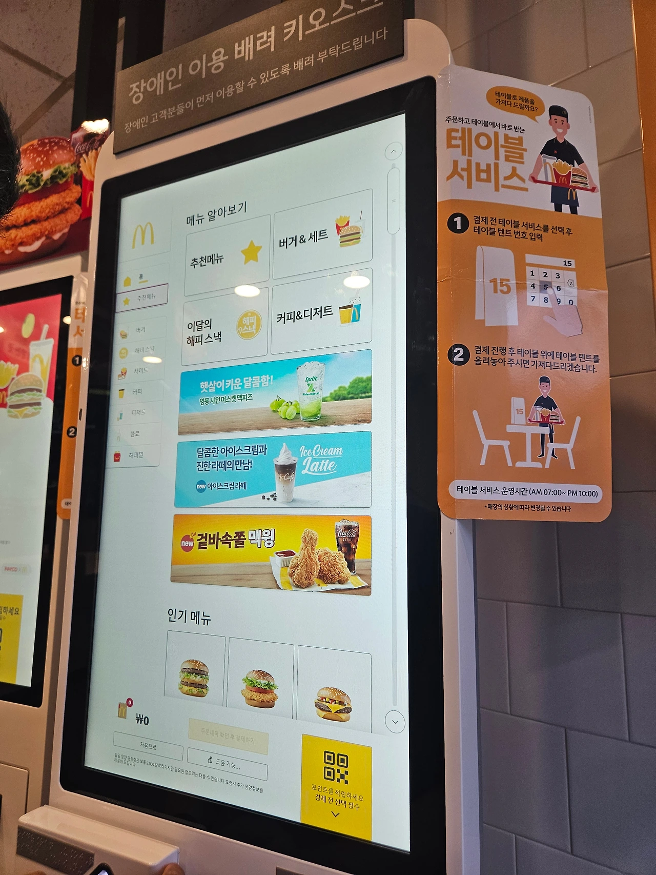 2023년 9월 미국 맥도널드에 이어 전 세계에서 2번째, 아시아에서 최초로 시각장애인을 위한 음성 안내 장치를 도입했다고 하니 이쯤에서 박수 한 번 보내고 다시 시작한다.