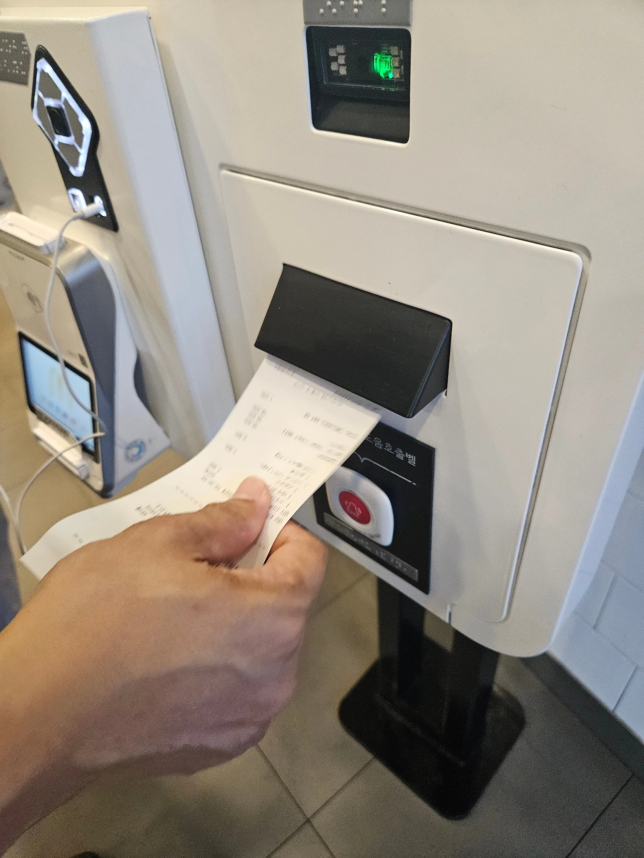 자세히 보니 이어폰을 꽂으라는 점자 안내가 쓰여 있는 다른 곳 하단부에 잭을 끼우고 귀에 꽂으니 안내만 해도 2-3분이 소요된다.