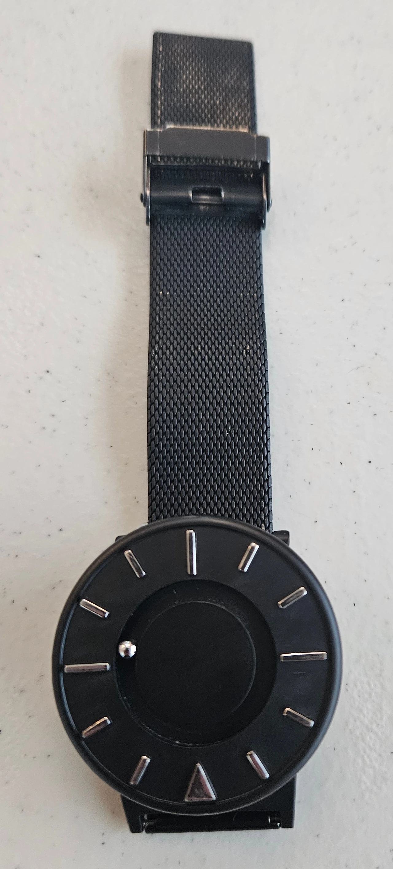 그러나 생활을 하다 보면 구슬이 제 멋대로 움직일 때가 많은데 그때마다 손목을 살짝 흔들어주면 자력으로 인해 다시 제자리로 돌아오게 되어 시간을 확인할 수 있다.