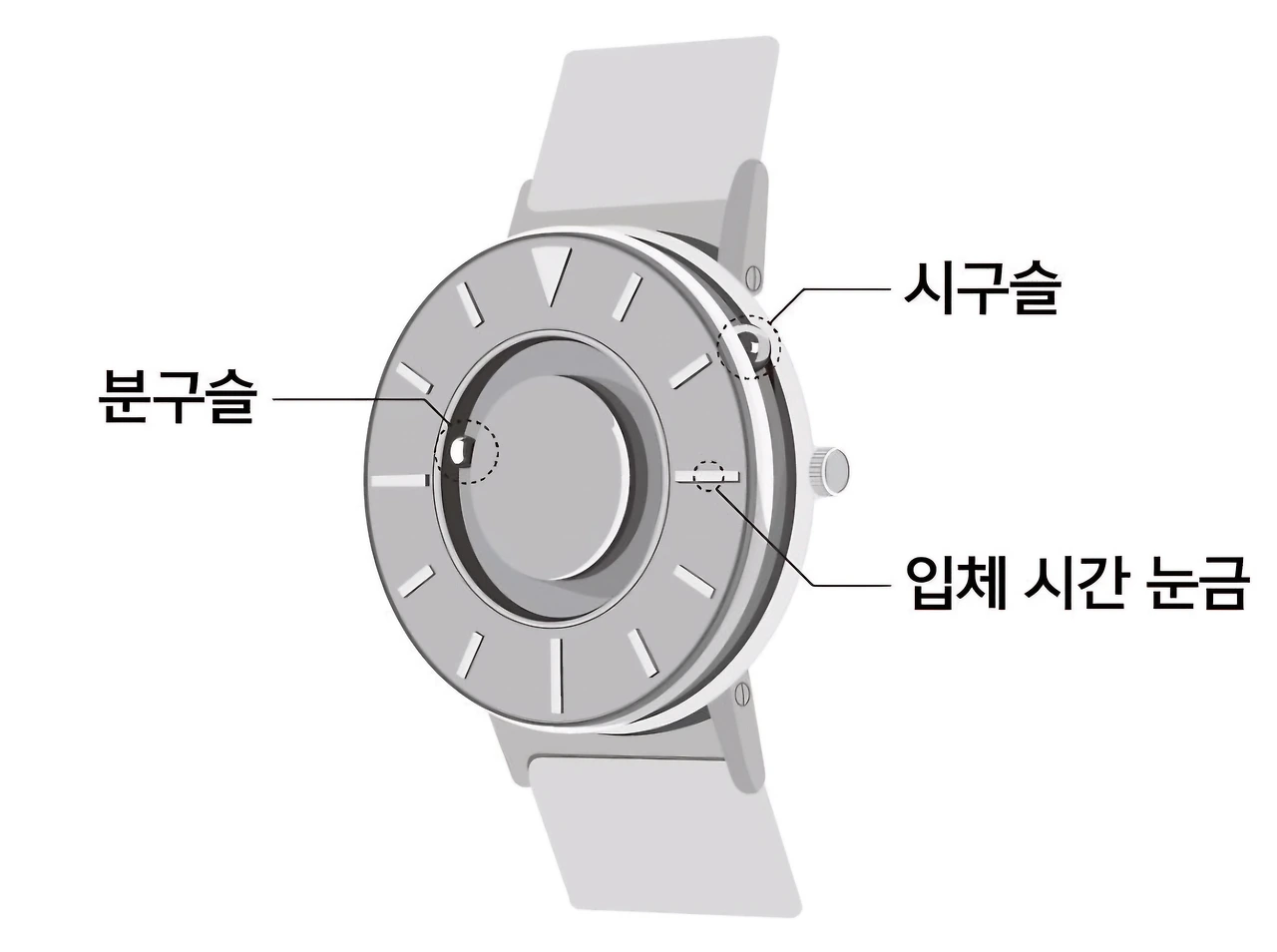 평소 더 자주 확인하는 분을 더 수월하게 확인할 수 있도록 하기 위에 앞면에 분을 나타내는 구슬을 장치한 것이다.