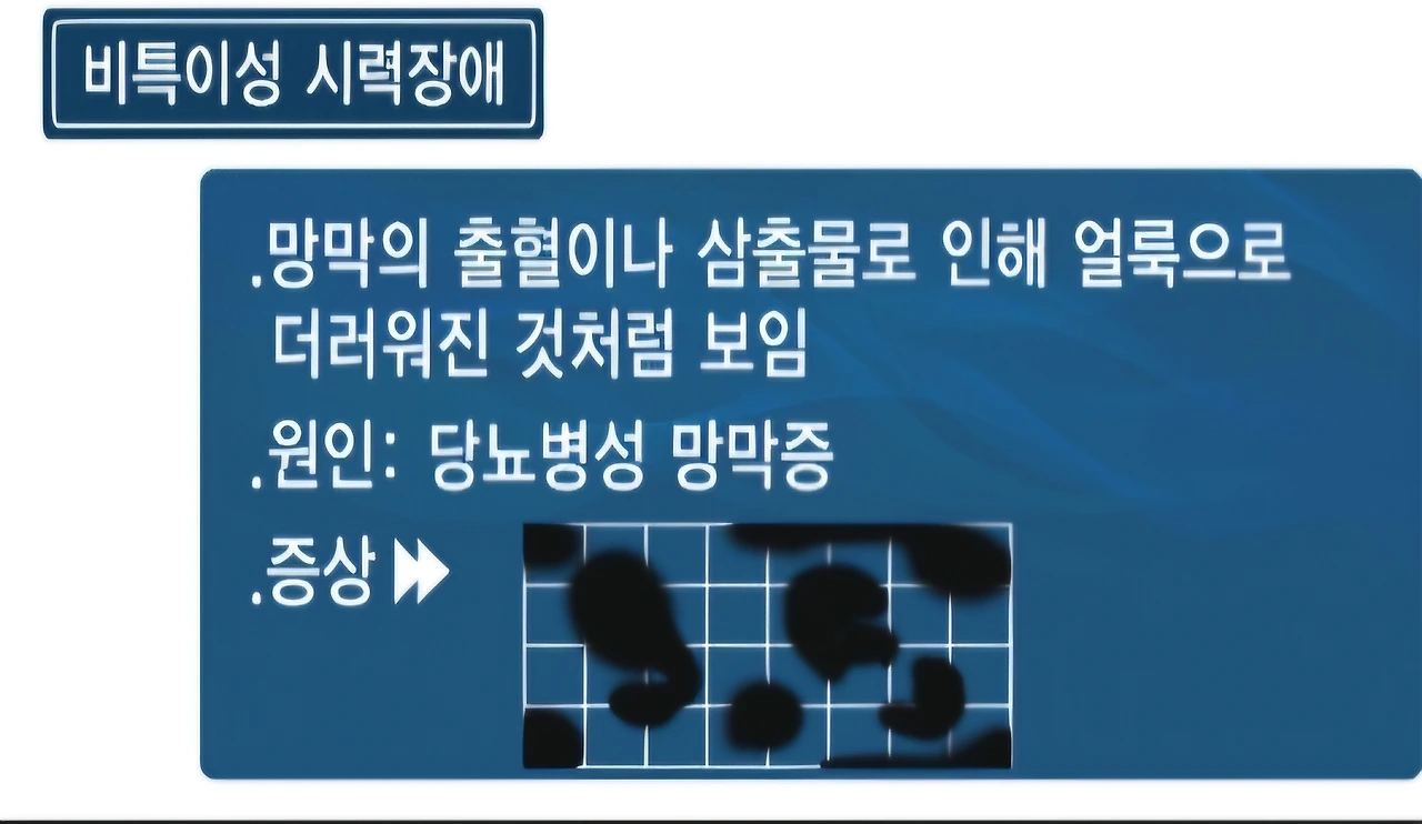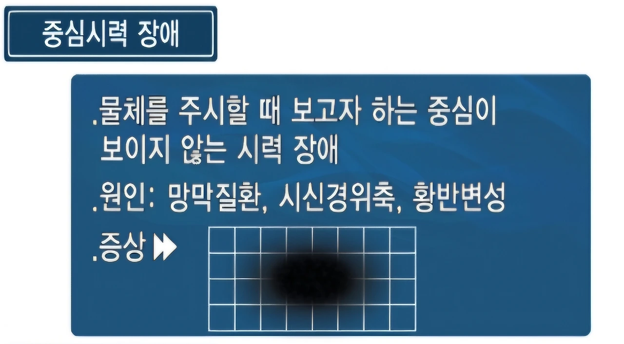 학술적으로 증명이 되지는 않았지만 오십 대 중반의 남편의 지인들이 갑자기 시력이 줄어 단독보행이 힘들어지거나 케인을 들어야 하는 것을 심심찮게 보게 된다.