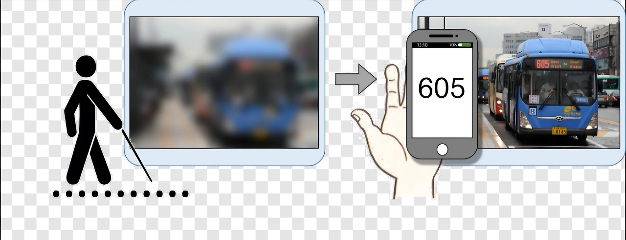 버스 정면, 측면과 후면을 촬영하여 버스 노선 번호를 인식해 화면과 음성, 진동으로 안내해 주기도 하고, 버스 내 카드 단말기, 하차 벨 위치 안내 기능 등을 인터넷 없이 사용하도록 할 예정이라고 한다.