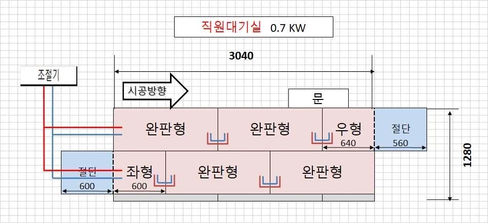 바닥 난방이 잘 되는지 실험을 해야 했기에 직원 대기실 작은 공간부터 시작해 본다.