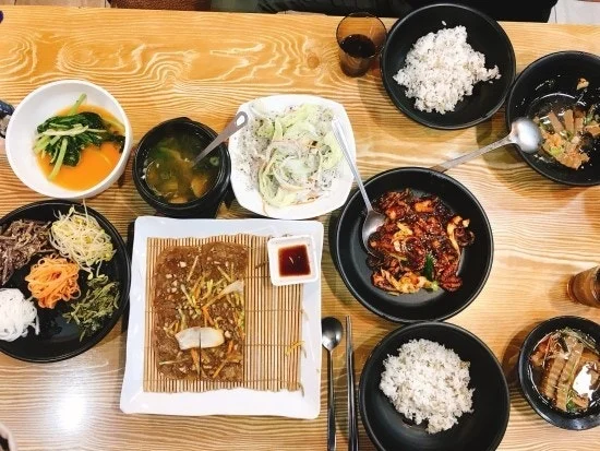 9시에 영업 종료라서 늘 간판이 꺼졌었구먼. 오후 영업 시작인 5시가 되자 줄을 섰던 손님들은 눈 깜짝할 사이에 식당 안으로 빨려 들어갔다. 순식간에 식당은 만석이 되며 입장 못 한 손님들은 대기자 명부에 기재하고 그대로 길 위에 서 계셨다. 창문 밖에서 들여다보이는 음식들로 가득한 상차림과 벽에 붙어있는 메뉴판을 번갈아 훑어보았다. 도토리 전, 도토리 묵사발, 샐러드, 열무물김치, 삼색나물과 된장국이 보이고 불주꾸미는 구이는 아니었다. 메뉴 이름으로 미루어 밥도 제공되는 볶음 요리인 듯했다. 된장국 이외는 소금을 첨가하는 음식들이 아니었다. 반가웠다. 밥을 비비지 않고 볶은 주꾸미만 막걸리 안주로 하고 비빔장은 남긴다면 염분은 걱정할 만큼은 아닌 듯했다. " 까짓, 매운 음식 한 번 먹어보자." 주저 없이 대기자 명부에 이름을 기재했다. 6시 만나기로 한 친구에게 식당 위치를 알려주기 위해 전화했다. 화들짝 놀란다. "불 주꾸미? 삼겹살집이 아니고?" 웬일이래? 의아해하는 눈치다.