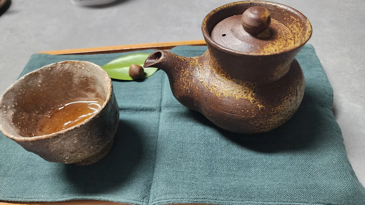 찻잔 김이 아련히 피어올라