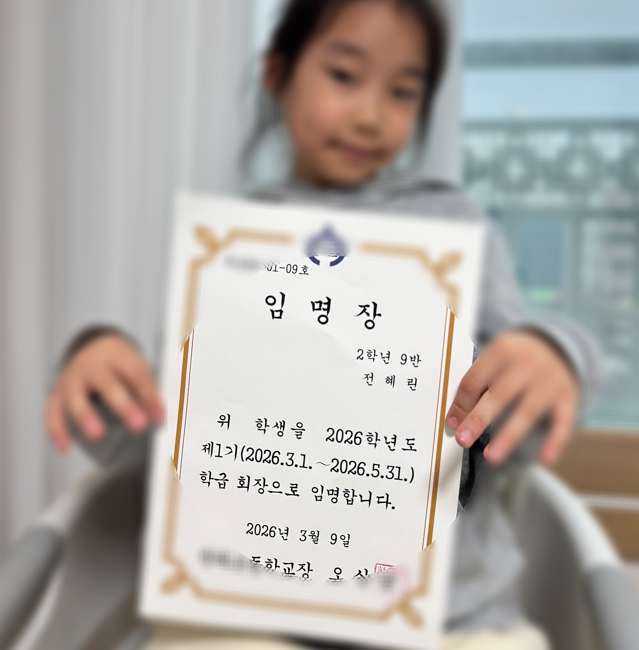 올해 이학년이 된 린이가 반 회장이 되었다는 기쁜 소식도 들려주었습니다