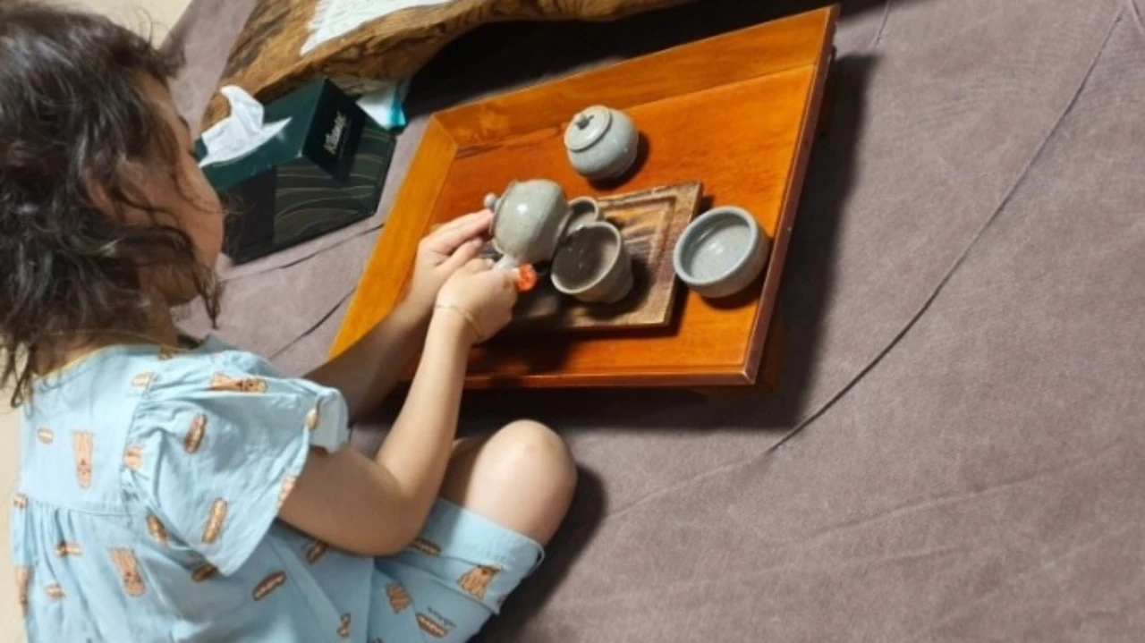 린이는 할머니 집에 올 때마다 그 조그만 손으로 차 따르는 연습을 하곤 합니다