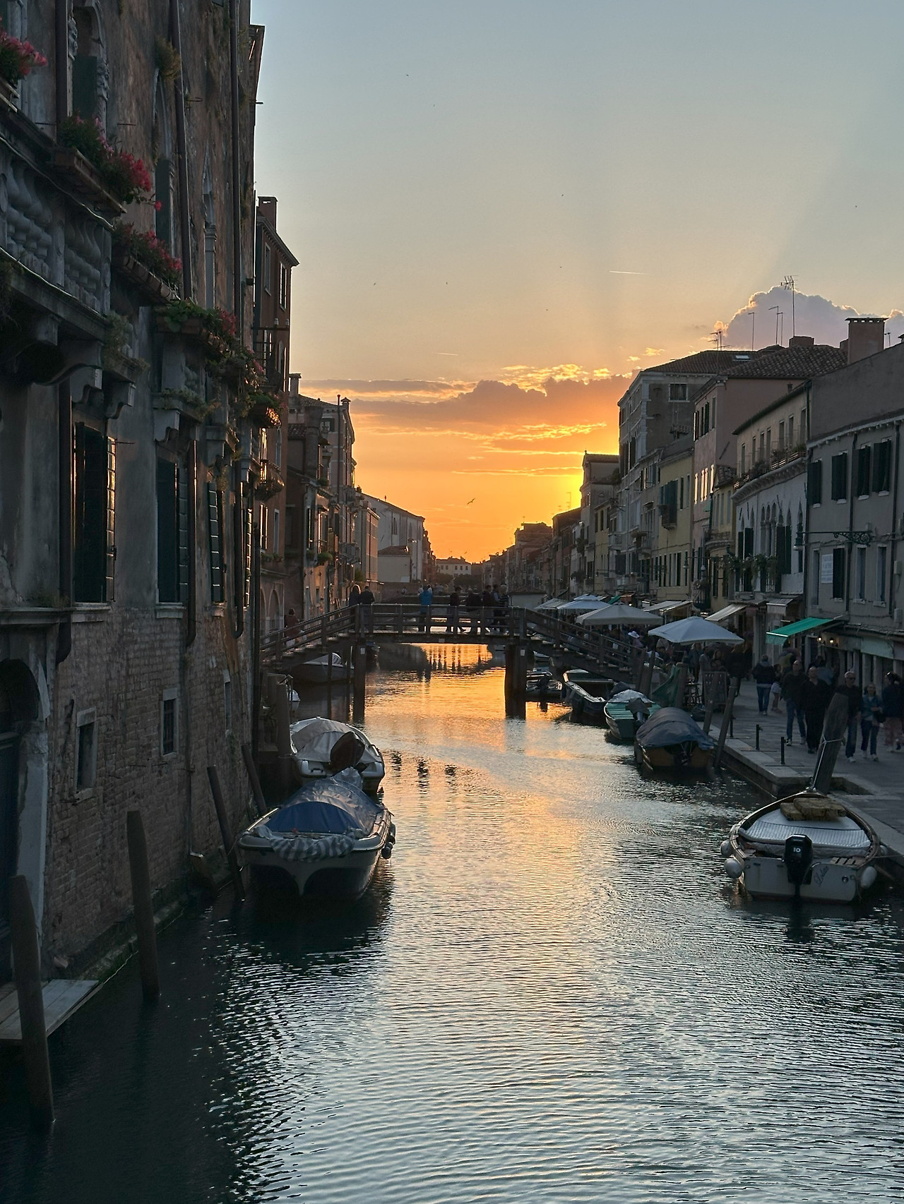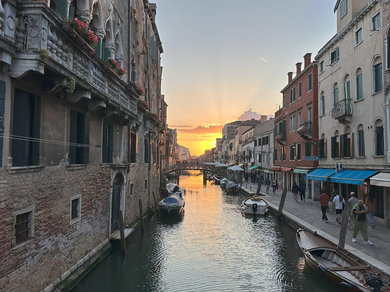 소운하의 다리 위에서 본 베네치아의 저녁 노을이 아름답다.
