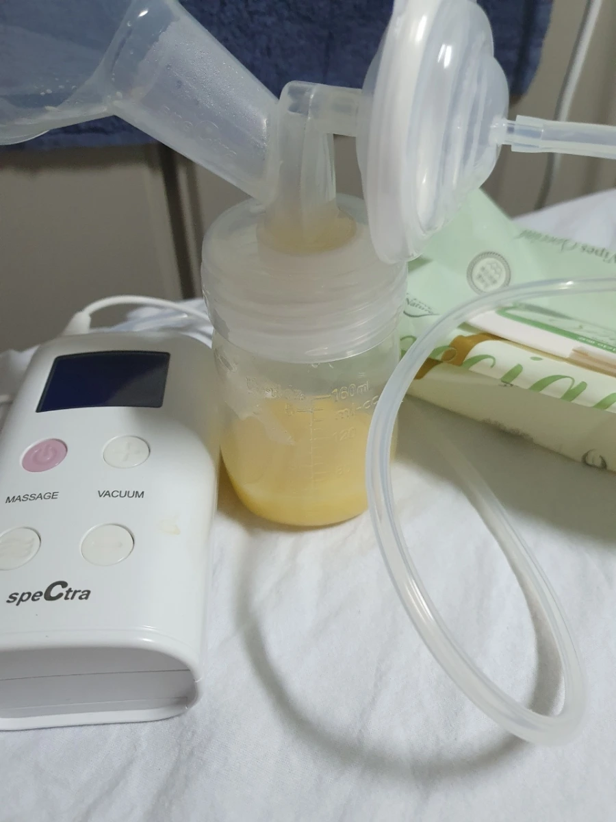 첫 유축을 하였는데 생각보다 초유 양도 많이 나왔다. 근데 위생 상 아기에게 먹일 수 없어 버려야 했다.