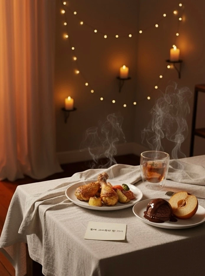 2인 식탁에 가볍게 올릴 수 있는 하트 디너를 준비해 봅니다.