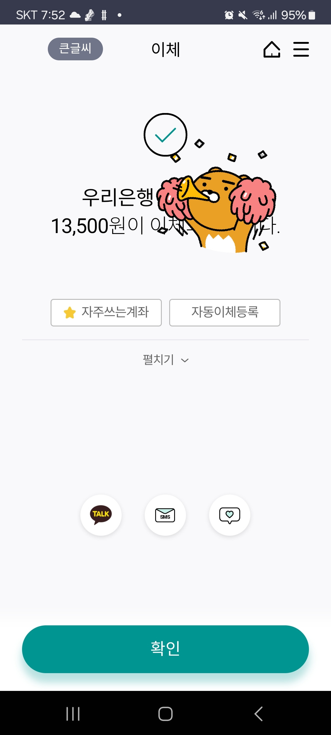 오늘도 내 딸 통장에 13,500원을 넣어주었다.