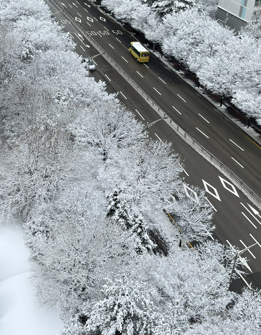 하얀 눈꽃이 속수무책 예쁘다는 생각만 들어서