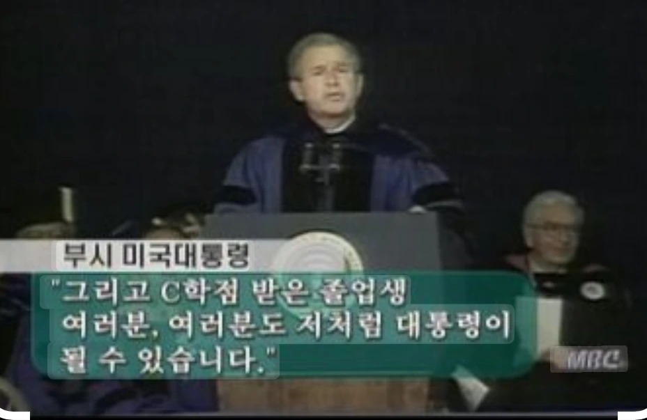 그리고 C학점 받은 여러분들에게 이런 말씀을 전하고 싶습니다. 다음엔 여러분도 미국 대통령이 될 수 있습니다"라는 축사를 했다.