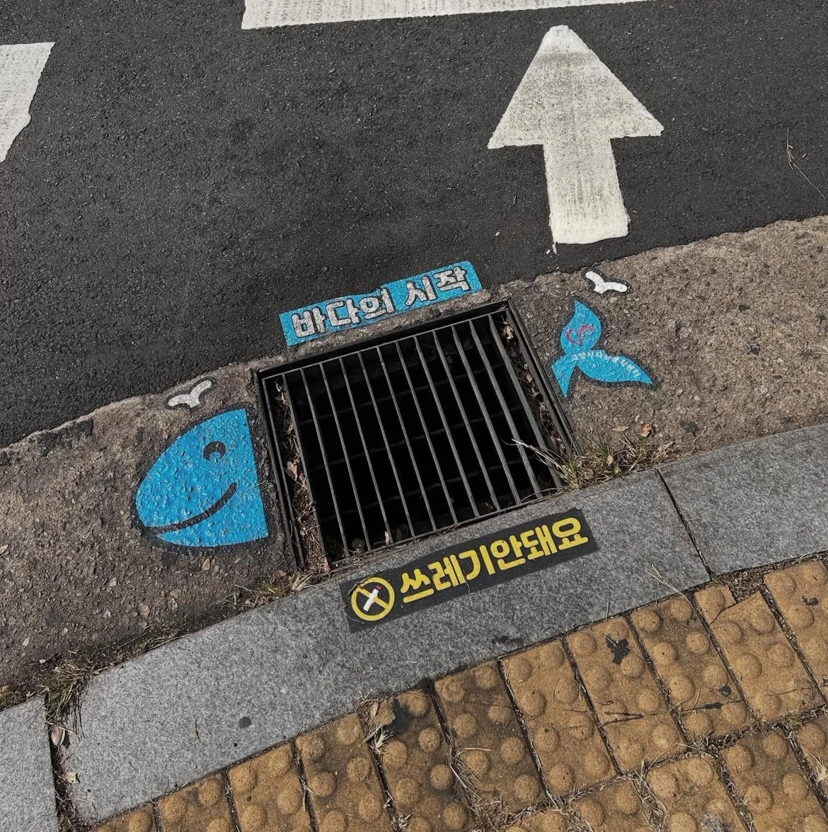 고래가 그려진 모습과 바다의 시작이라는 문구를 보고 어떻게 담배꽁초나 쓰레기를 버릴 수 있을까! 작은 그림이 주는 큰 영향력.