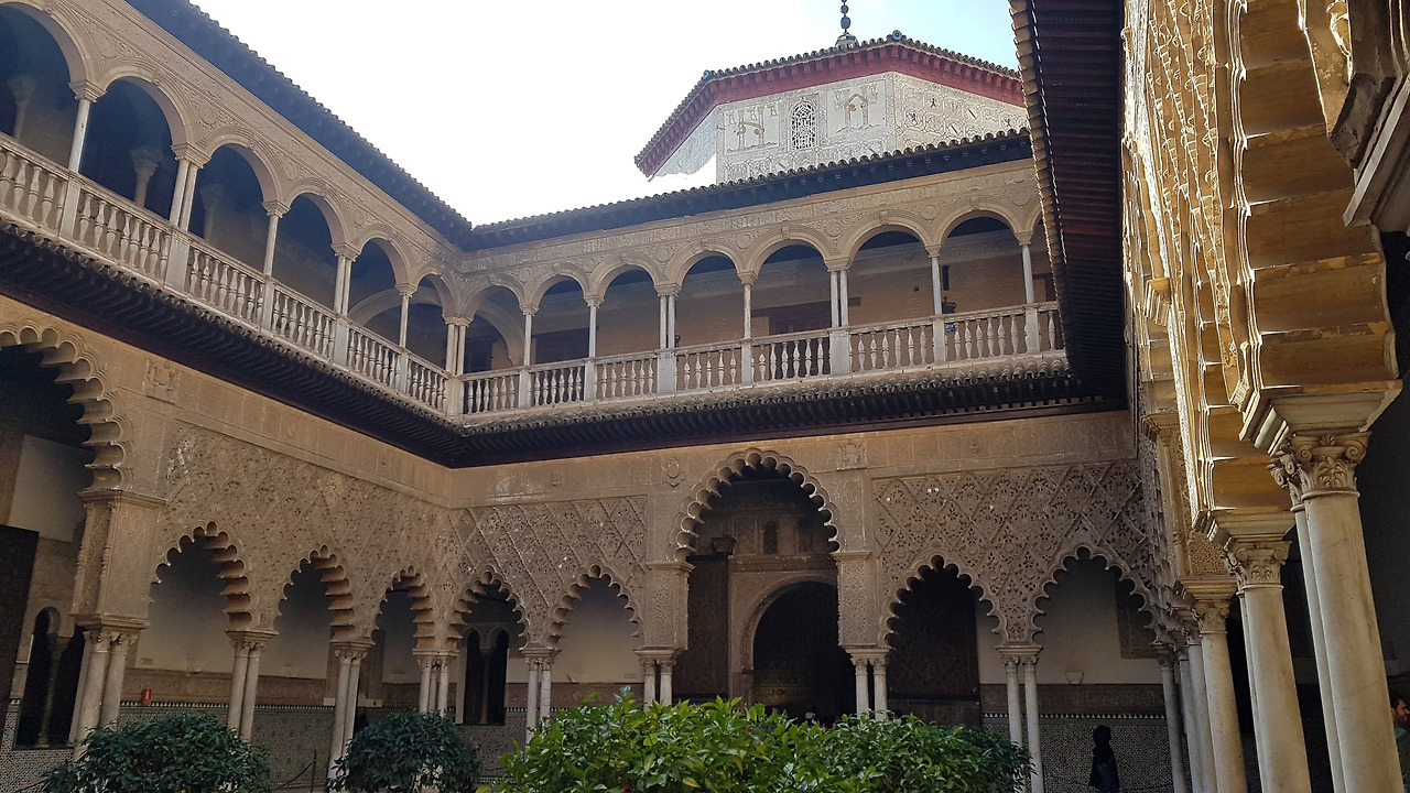 세비야 대성당 바로 옆에 알카사르 궁전(Sevilla Real Alcazar)이 있습니다. 이 구역은 산타크루즈(Santa Cruz) 지구라 해서 옛 유대인 거주 지역이라고 합니다. 알카사르 궁전은 세비야 대성당과 달리 이슬람 양식입니다.