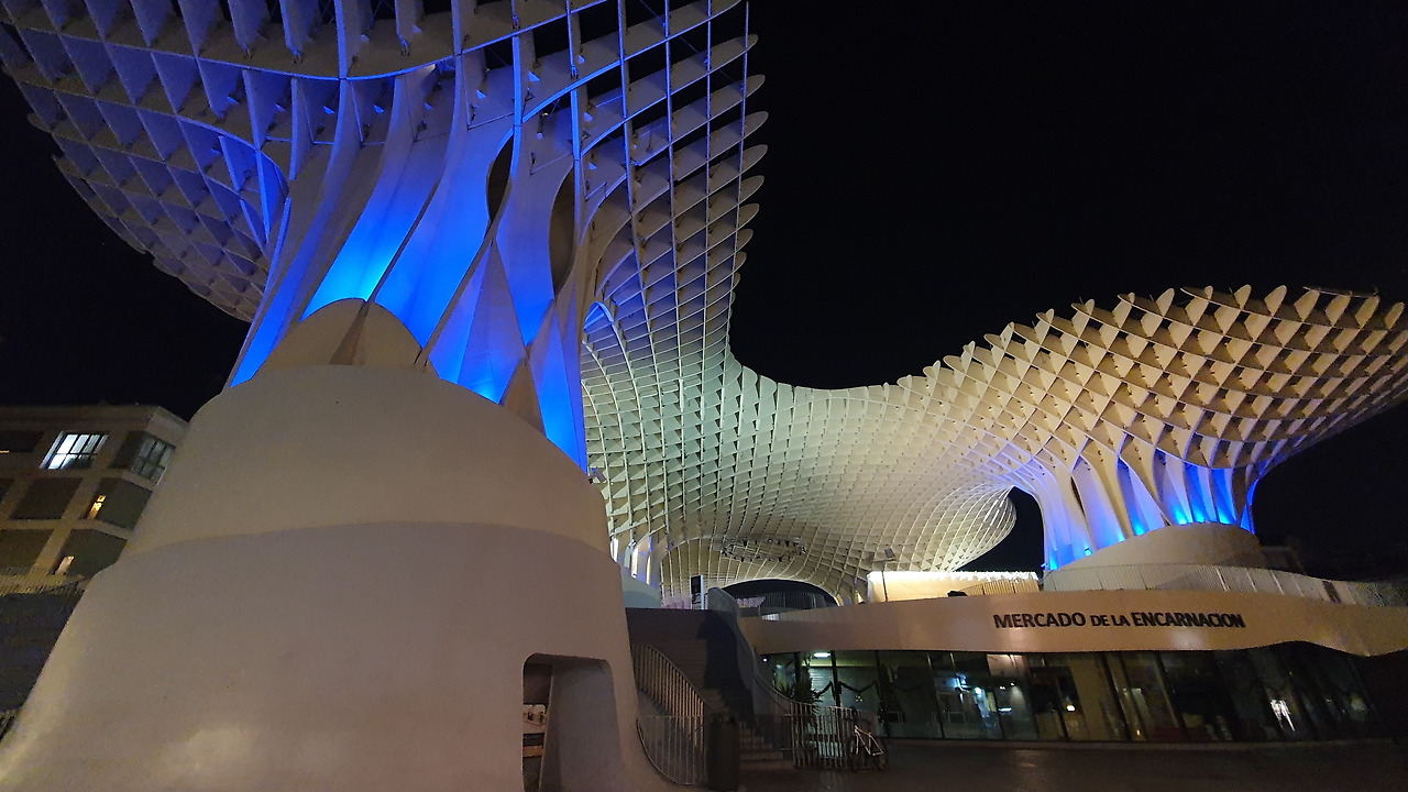공연 후 숙소로 돌아오는 길에는 독일 건축가 위르겐 마이어 헤르만(Jurgen Mayor Hermann)이 2011년에 지은 세계 최고 목재건축물 메트로폴 파라솔(Metropol Parasol)을 만납니다. 해질녘 전망대에 올라가면 멋진 주변 야경을 즐길 수 있다는 곳입니다. 시간은 밤 시간. 이 늦은 시간에는 사람 출입을 막는 모양으로 입구가 닫혀 있습니다.