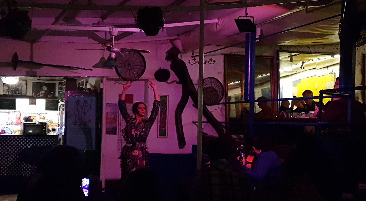 카디스를 다녀온 후 숙소에서 쉬었다가 밤이 되자 다시 움직였습니다. 여기도 올드 타운이다 보니 골목골목이 전부 미로입니다. 핸드폰 구글 지도를 보며 카보네리아(La Carboneria) 카페를 찾아갔습니다. 맥주 한 잔 3유로에 플라멩코 공연이 나그네 객고를 달래 줍니다. 어젯밤 추억의 집에서의 플라멩코는 정통 공연인지라 관람료도 내어야 했고(18유로), 공연 중 촬영도 금지였지만 이곳은 술 한 잔만 마시면 더 돈 쓸 일 없습니다. 촬영도 가능하고요. 공연은 별도의 무대 없이 한 쪽 외진 구석에서 진행됩니다. 춤이나 노래 급은 어제 공연에 비해 조금 떨어집니다. 하지만 선술집에서의 이런 거친 플라멩코도 아름다울 수 있습니다.