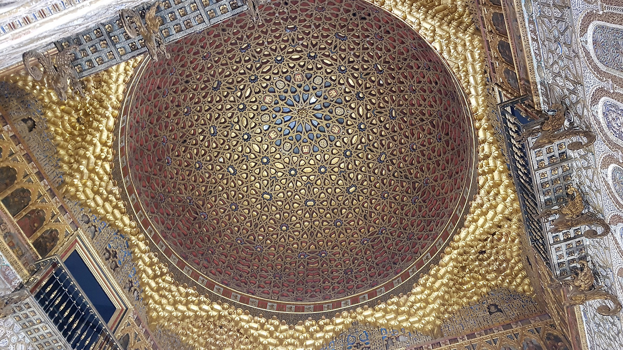 알카사르 궁전은 1170년 즈음에 지어졌다고 합니다. 카스티야 왕국이 이 지역에 존재했는데 당시 왕이었던 페드로 1세가 알함브라 궁전에 홀딱 반해 가지고 그라나다와 톨레도 지역의 무슬림 장인들을 왕창 긁어모아가지고 짓게 했다는군요. 다른 것은 몰라도 우주를 상징하는 천장 무늬의 화려함은 눈여겨볼 만합니다.
