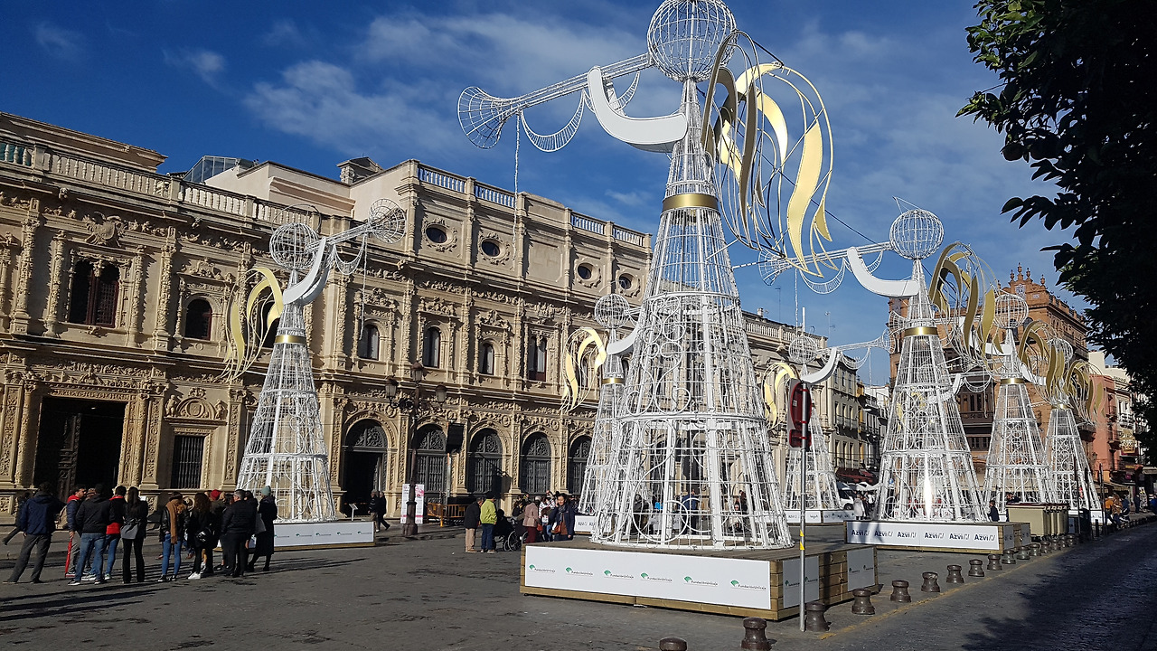 산 물건을 도로 숙소에 가져다 놓고 다시 출발. 세비야 대성당 코스는 날아갔습니다만 발걸음은 가볍습니다. 그래도 겉껍데기라도 봐 줘야 걔 체면도 살 것이겠다 싶어 그쪽으로 방향 잡아서 갑니다. 핸드폰 구글 지도는 껐습니다. 아무리 미로가 어지럽다 해도 내 감을 믿고 가 보기, 재미있을 듯합니다. 가는 길에 시청 청사를 만나고 그 앞 누에바 광장(Plaza Nueva)도 만납니다.