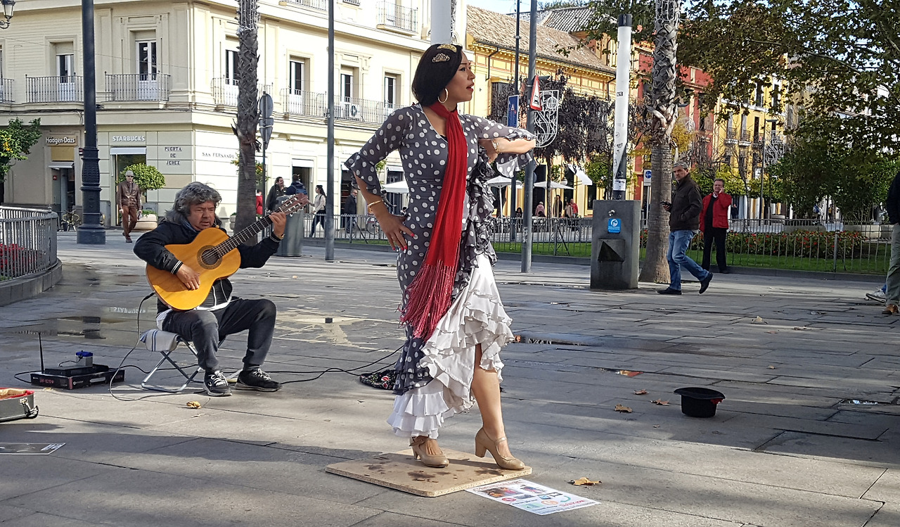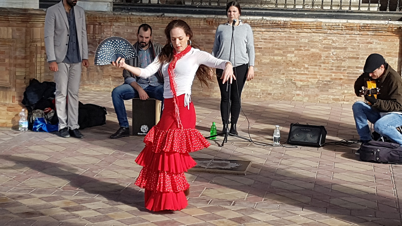 스페인 광장에서도 플라멩코를 보게 됩니다. 명실 공히 세비야는 플라멩코의 본향이다 싶습니다.