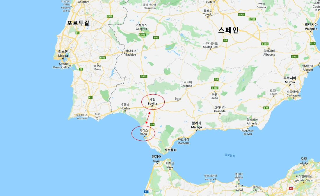 버스 타고 대서양을 낀 해안도시 카디스(Cadiz)에 왔습니다. 서유럽 최고(最古) 도시, 물경 3천 년 역사의 도시, 안달루시아의 대표 휴양지, 희대 개망나니 콜럼부스의 전진기지 카디스.
