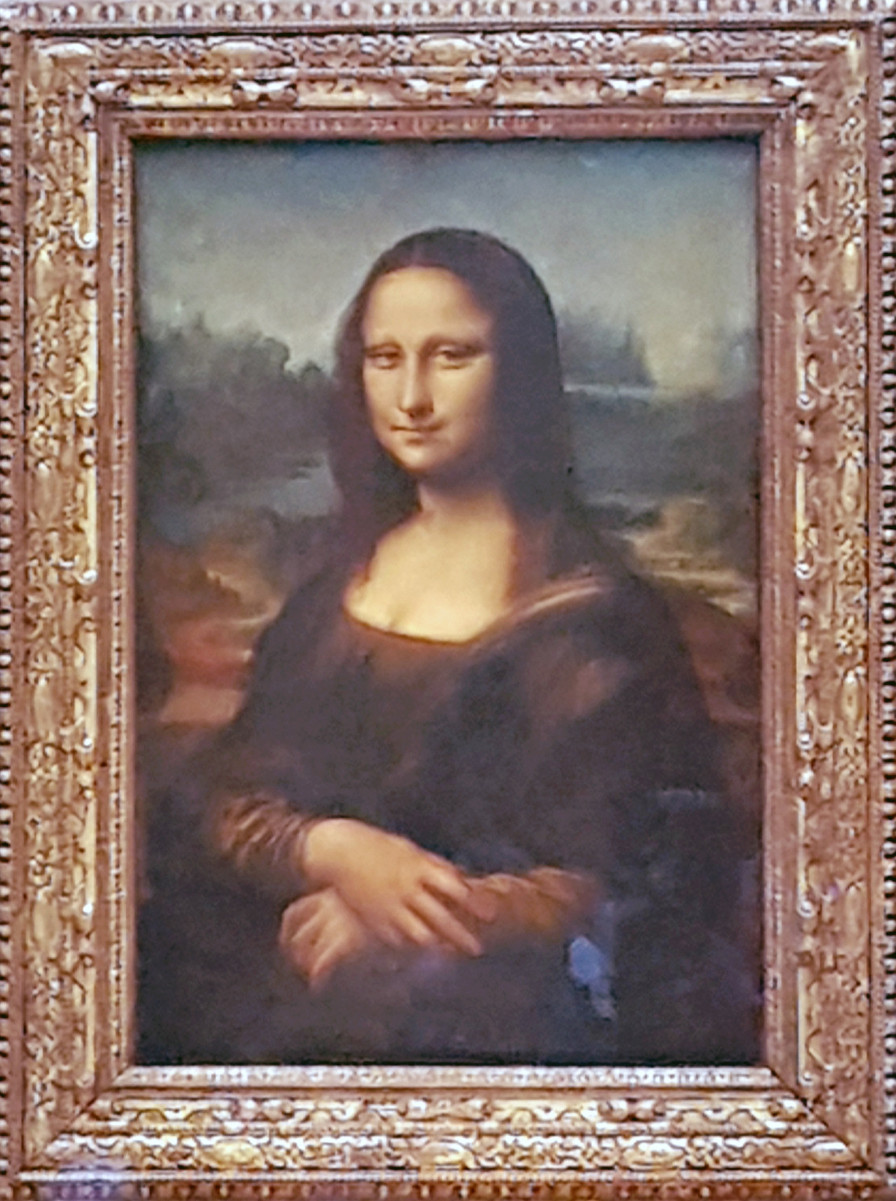 찝찝한 기분을 삭이며 안내원 말을 되새기며 이리저리 돌고 돌아 어딘가로 들어가니 저 안쪽에서 모나리자가 방긋거리고 있습니다. 워낙 인기 높은 그림인지라 20분 정도 줄서서 기다린 끝에 간신히 모나리자와 눈을 맞춥니다. 저 작은 그림 한 점에 전 세계 사람들이 그토록 난리를 치나 했습니다만, 관람객에게 주어지는 그 짧은 시간에 쫓기듯 봤음에도 대단한 그림 같기는 합니다그려.