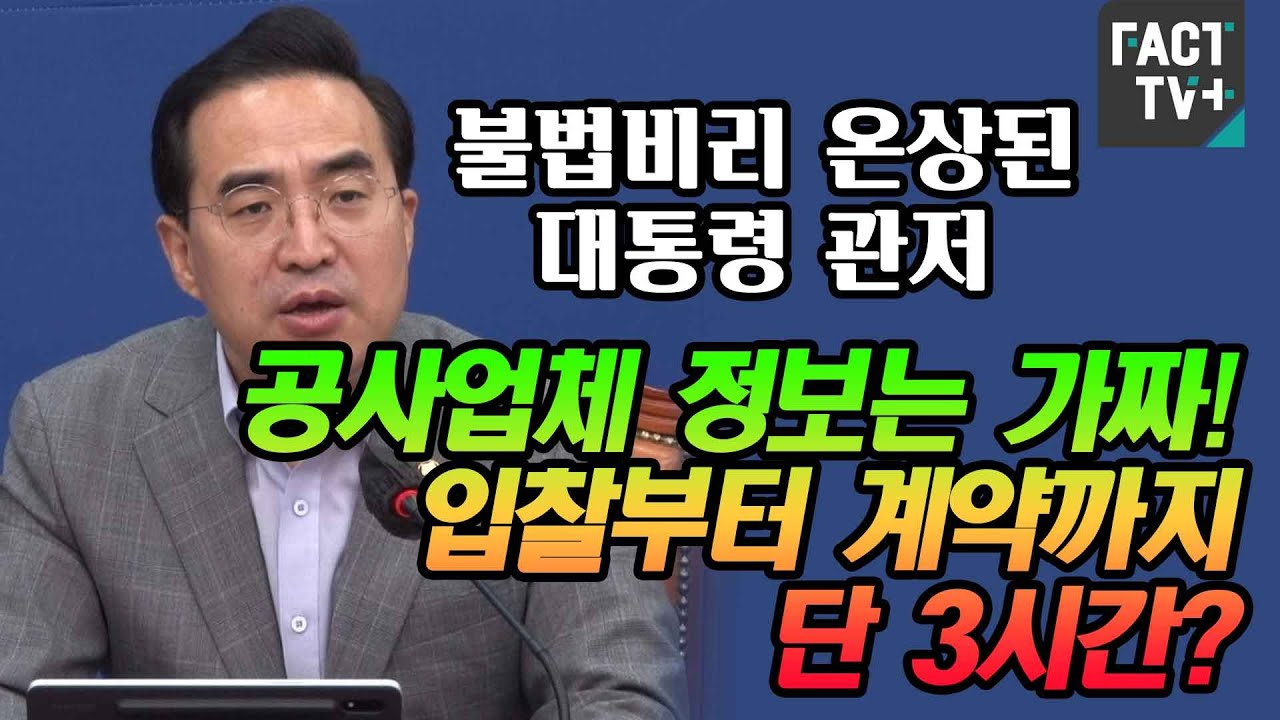대통령 관저 공사 관련 비리를 주장하며 국정감사를 예고 발표하는 박홍근 더불어민주당 원내대표. 사진 Fact TV News 화면 갈무리