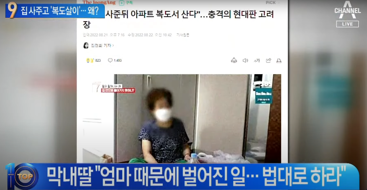 80대 노모의 아파트 복도 노숙 뉴스에 '현대판 고려장' 단어가 버젓이 쓰이고 있다. 사진 채널A 뉴스 화면 갈무리