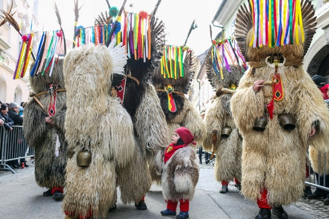 슬로베니아 푸투이의 쿠렌트오바니예 카니발에서의 탈을 쓰고 분장한 쿠렌트(술의 신)들. 사진 dnevnik.si