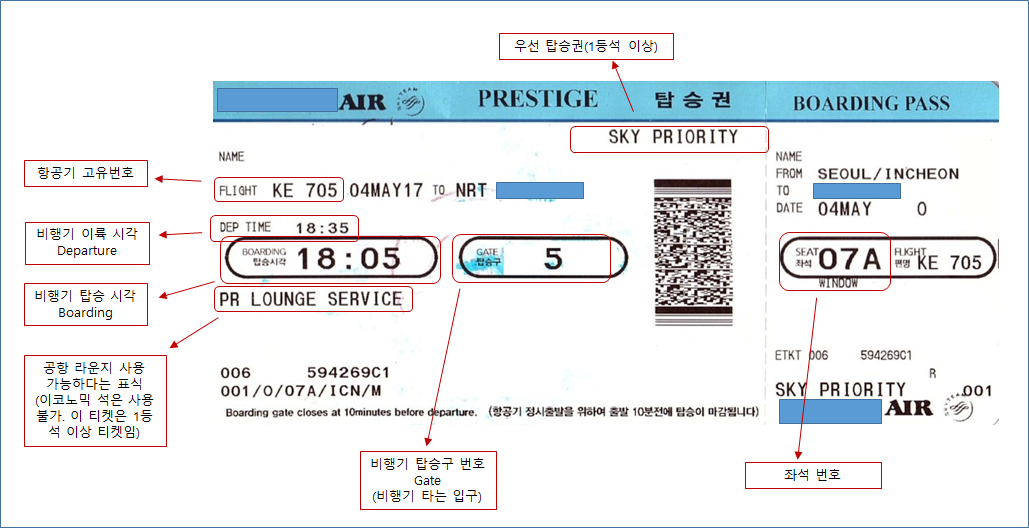 보딩패스에 기입된 것들을 잘 확인해야 한다.