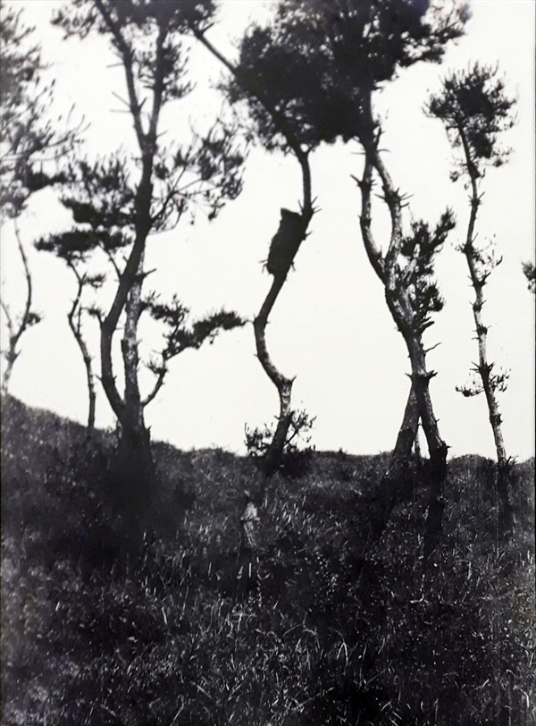 한국 서해 도서 지역에서 널리 행해졌던 수상장(樹上葬). 시신이 가마니로 싸여 나무 중간 즈음에 묶여있는 모습. 사진 전킨선교사기념사업회