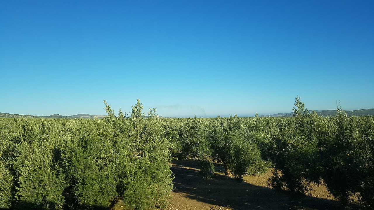 코르도바 가는 길 내내 도로 좌우에 넓고 넓은 민둥산과 평야가 펼쳐져 있습니다. 어디 곳이든 한 종류 나무가 광활하게 심어져 자라고 있습니다.