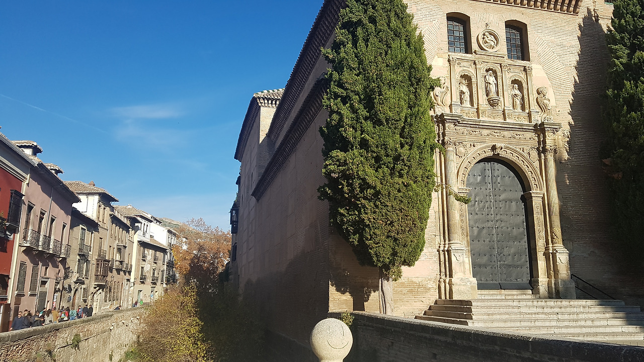 마을 아래에 닿으면 누에바(Nueva) 거리가 됩니다. 그 길을 걷다보면 누에바 광장이 나오는데 광장이라고 해 봤자 농구장 크기 정도 공간입니다. 누에바 거리에 붙어 있는 알함브라 궁전 외벽 바깥은 곧바로 낭떠러지가 되고 그 아래에는 도랑이 흐르고 있습니다. 지금은 건천(乾川)이지만 예전에는 충분한 물줄기로 해자(垓子) 역할을 해냈겠죠.