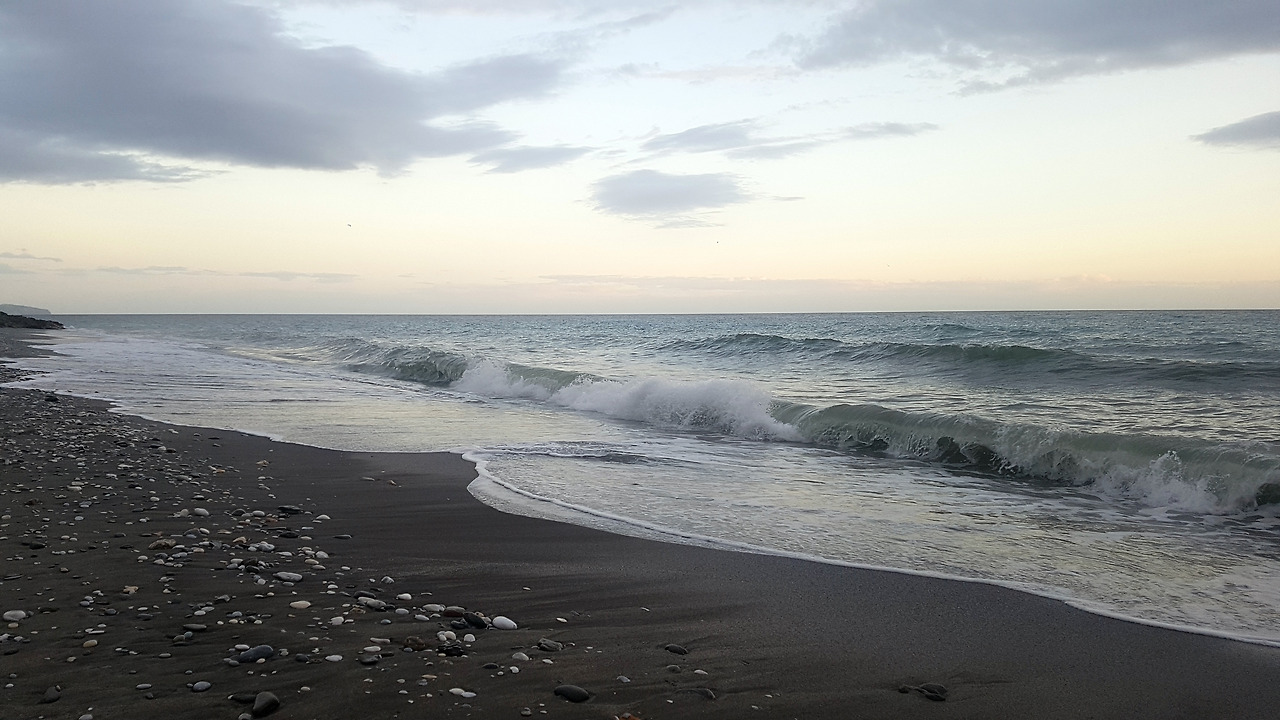 지중해 맛을 음미하며 바라보는 바다. 조용히 다가와 부드럽게 부서지고, 물러갔다가 다시 또 다가오는 파도. 파도는 무엇인가를 생각 중인 모양입니다.