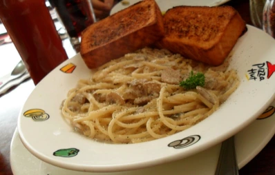 다음날 방문에 대해서도 상세히 기록해 두었다. 버섯크림파스타, 작은 옥수수 팬피자, 복숭아 주스, 콜라 정도면 첫날보다는 정신 차린 2인분 양이다. 팬 피자 도우는 우리나라 것과 많이 달랐다. 더 두껍고 튀긴 것처럼 퐁신퐁신한 것이 고로케와 비슷한 식감이었다.