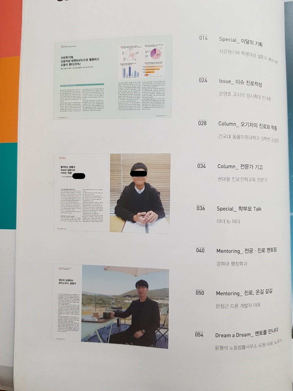 사진까지 대문짝만 하게 4페이지에 걸쳐 실리며 고등학교에 배포하는 입시 잡지에 실렸다.