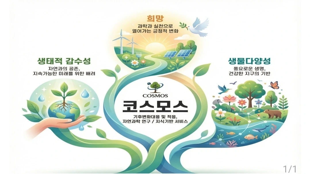 나는 기후위기 시대 대안을 제시하기 위해 회사를 설립하게 되었다. 조화로운 우주라는 뜻인 코스모스의 어원에서 볼 수 있듯이 매일 기후로부터 위협받고 있는 현시대에서 기후위기가 극복된 미래를 꿈꾸며 사명을 가지고 사명을 짓게 된 것이다.