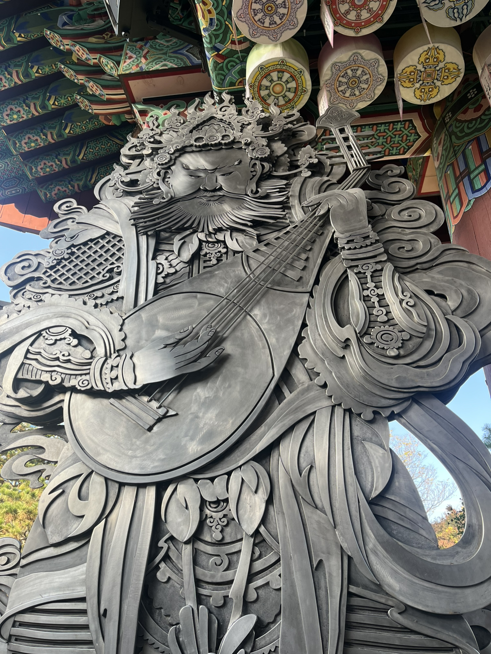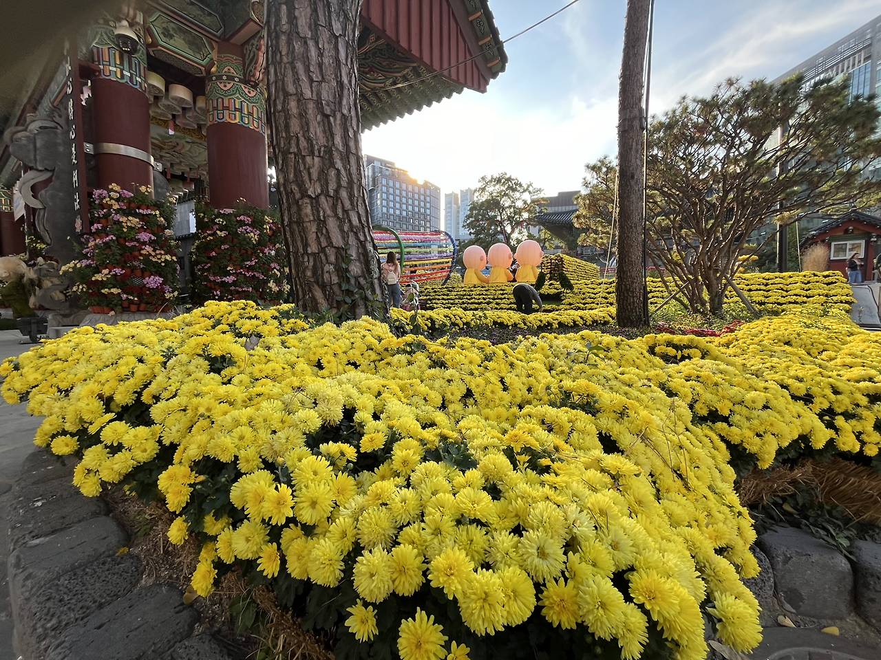 조계사 옆 우정총국을 찾아가다가. 조계사 사천왕상이 아주 세련되게 바뀐 것을 보았다. 입체이면서 평면이고, 부드러우면서 날카롭고, 무채색이면서 다채로웠다. 누가 이렇게 디자인했을까. 사천왕상 주변으로 가득한 노란 국화로부터 언뜻 기대하지 않던 향기가 났다. 마음이 완전히 개었다.