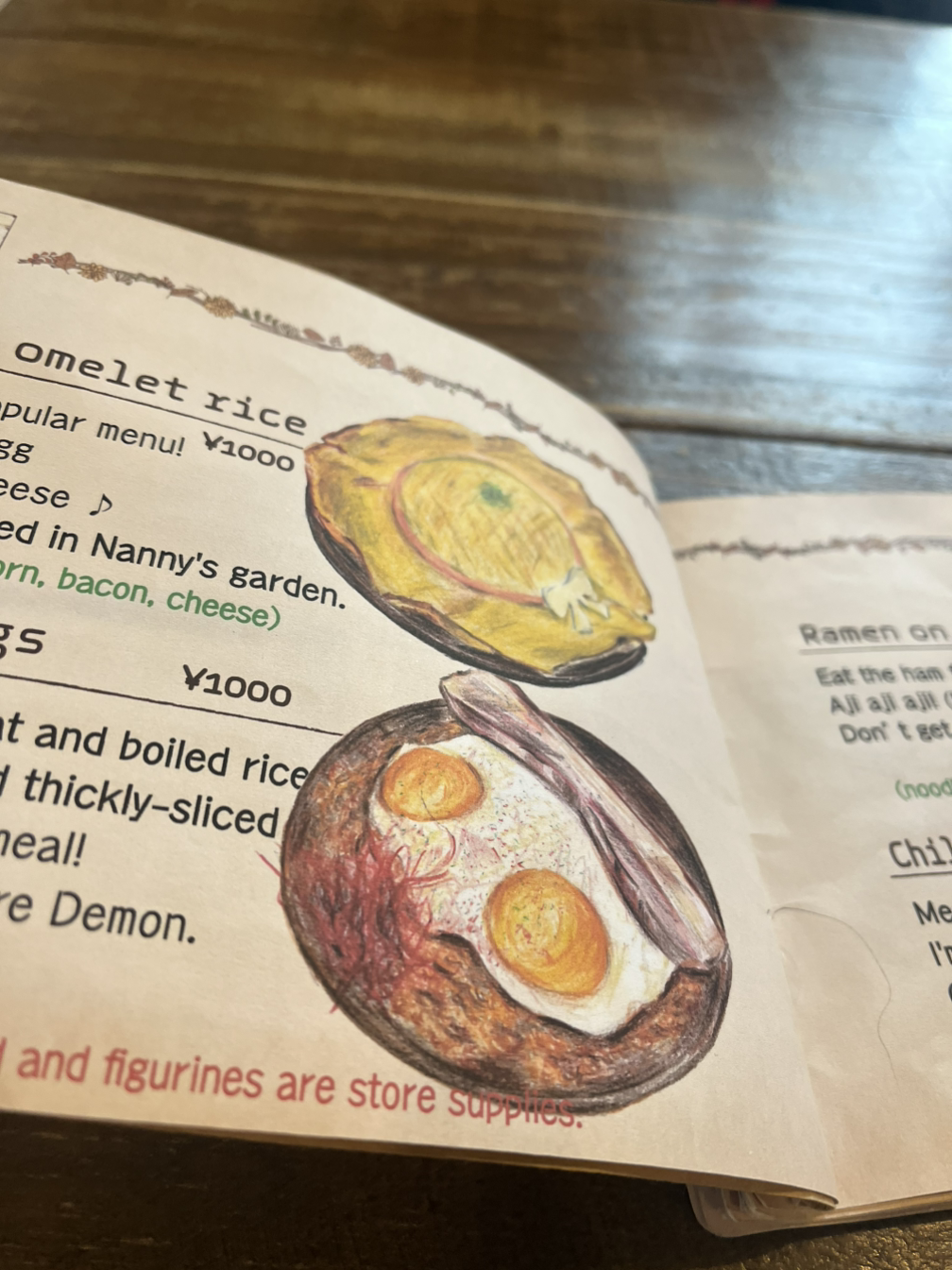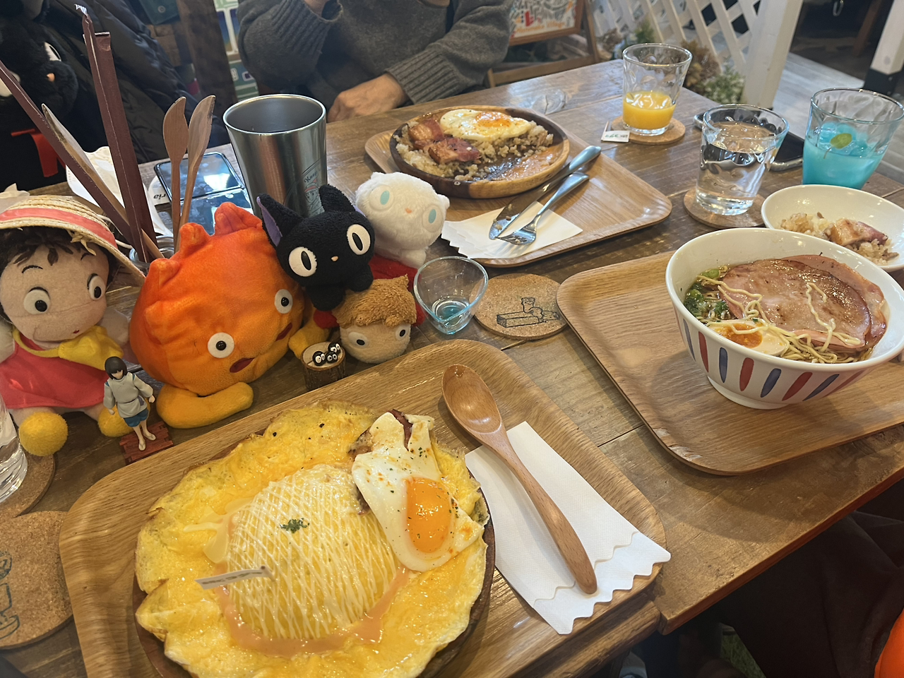 저희가 주문한 메뉴는 하쿠강 음료 (센과 치히로의 행방불명), 포뇨 라면 (벼랑 위의 포뇨), 캐스퍼 베이컨 계란 볶음밥 (하울의 움직이는 성), 그리고 우롱차와 오렌지 주스. 인스타그램으로 예약했고, 메뉴는 다 예쁘고 맛있었어요. 이른 저녁 해결했습니다. 할머니는 단무지, 김치, 피클 같은 반찬이 없는 게 심히 아쉬웠습니다. 저도 약간. 입맛은 조금 닮았는지도 모르겠네요.