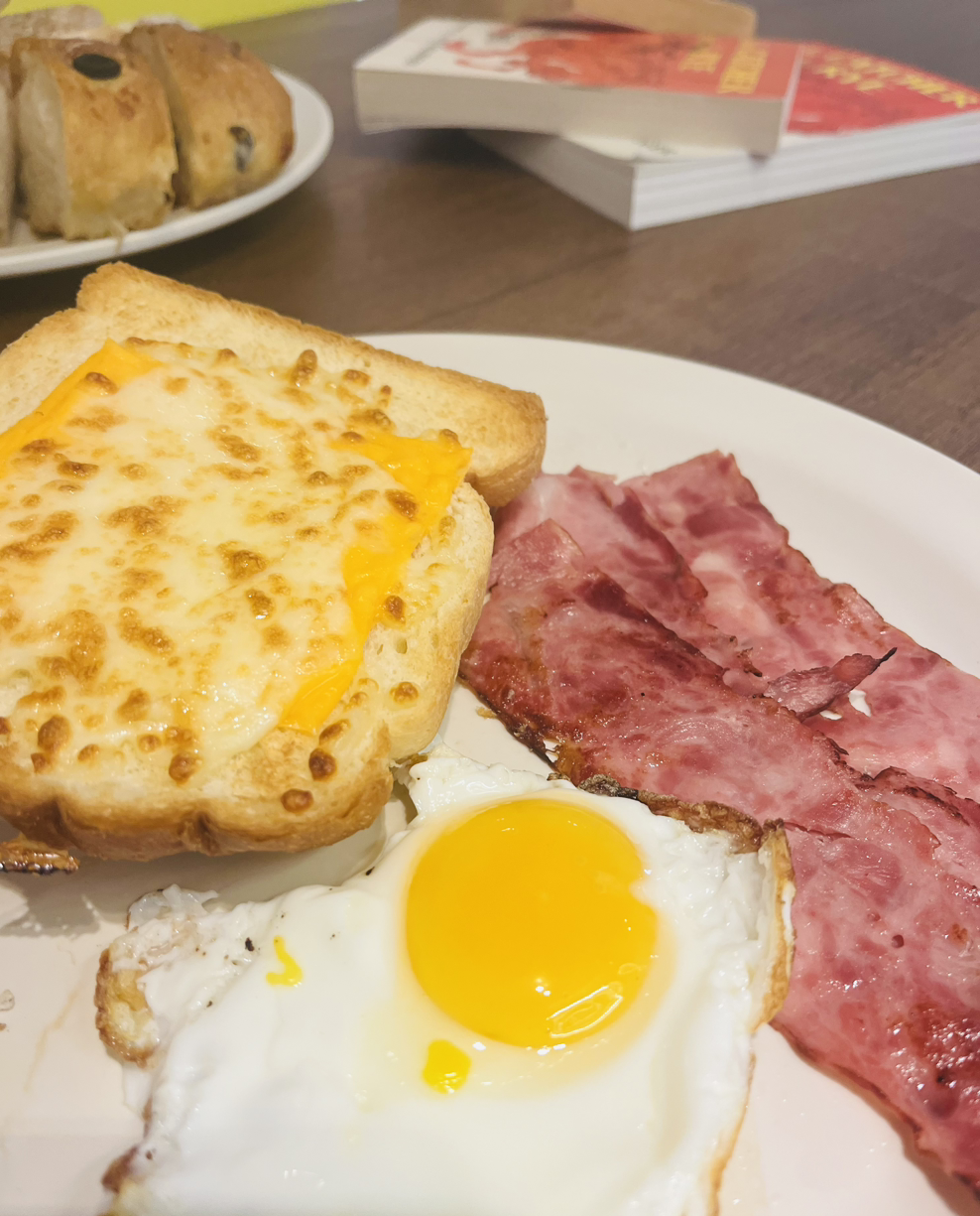 그들 둘이 아침으로 먹고 있는 건 토스트와 커피뿐이었다. 그걸 보니 우울했다. 나는 베이컨과 달걀이나 그런 걸 먹고 있는데 다른 사람은 토스트와 커피만 먹고 있는 건 싫다.