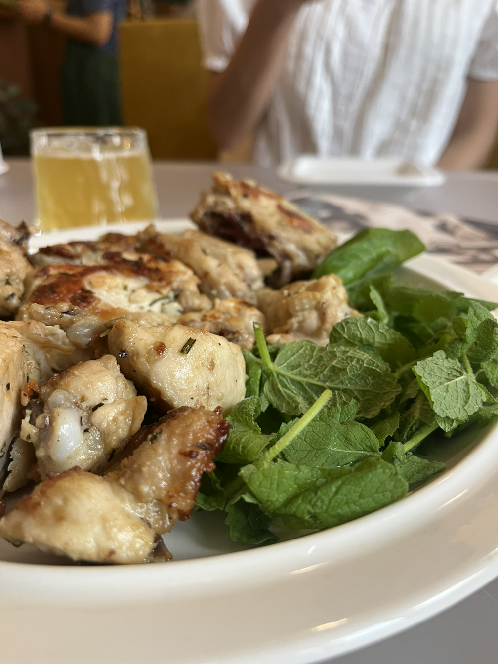 닭고기에 레몬즙, 소금, 버터, 마늘, 로즈메리를 버무려 오븐에 구우면 끝. 오븐에 다 들어가지 못한 닭은 프라이팬에 익혔다. 오늘 재료는 엄지 중 아지가 대부분 챙겨 왔다. 그녀가 향긋한 로즈메리를 다듬고 버터에 섞어 닭에 버무렸다.