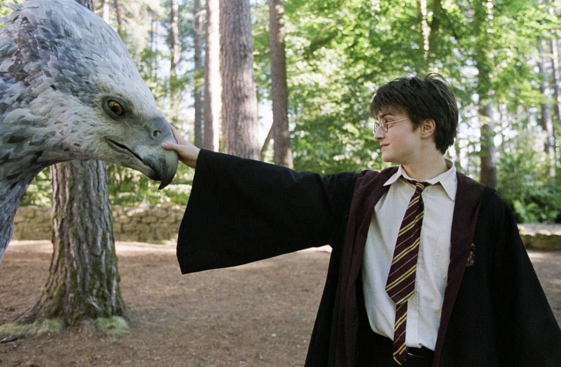 이야기 앞쪽에서 해리가 해그리드 수업시간에 벅빅과 인사를 나누고, 사자 새처럼 생긴 벅빅 등에 올라 타 신나게 호수 위를 나는 장면이 떠오릅니다. 그때 해리가 못마땅한 말포이가 깝죽대다가 벅빅한테 팔을 다쳤거든요. 말포이 아빠가 한 빽하는데, 아들 말포이가 다치니 사형을 주장했고, 그게 받아들여진 겁니다. 덤블도어도 어쩔 수 없었죠. 해리와 헤르미온느는 벅빅을 보살피는 해그리드도, 해그리드를 보살피는 덤블도어도, 마법부 룰을 따르는 장관도 곤란하지 않은 시점에 벅빅을 탈출시킵니다. Bravo.