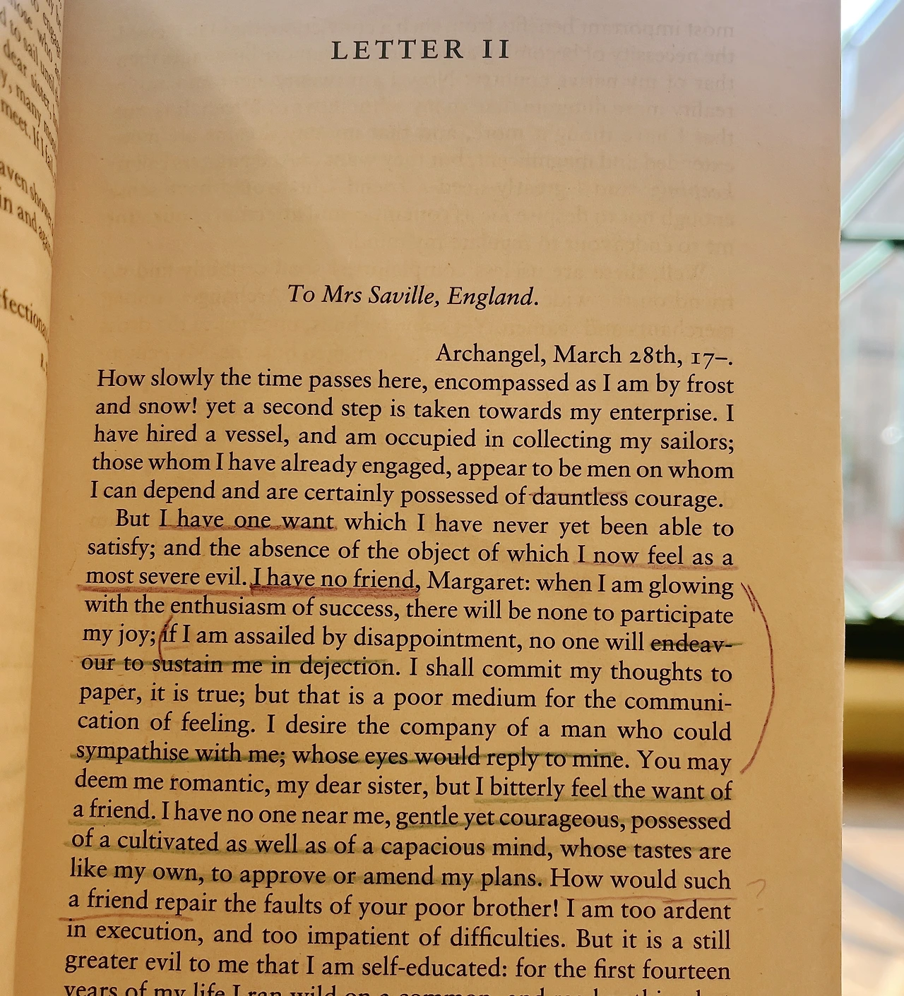 그녀가 내게 말을 건다. 올해를 마무리하면서 메리쉘리가 쓴 <프랑켄슈타인>을 원서로 읽고 있다. 펭귄출판사의 1831년 개정판이다. 이번 책은 희한하게도 작가와 무릎 맞대고 얘기하는 것 같은 느낌을 받을 때가 종종 있다. '친구가 하나도 없다'로 들어온 이에게 말을 걸어보고 싶다. 그녀 목소리를 빌려서.
