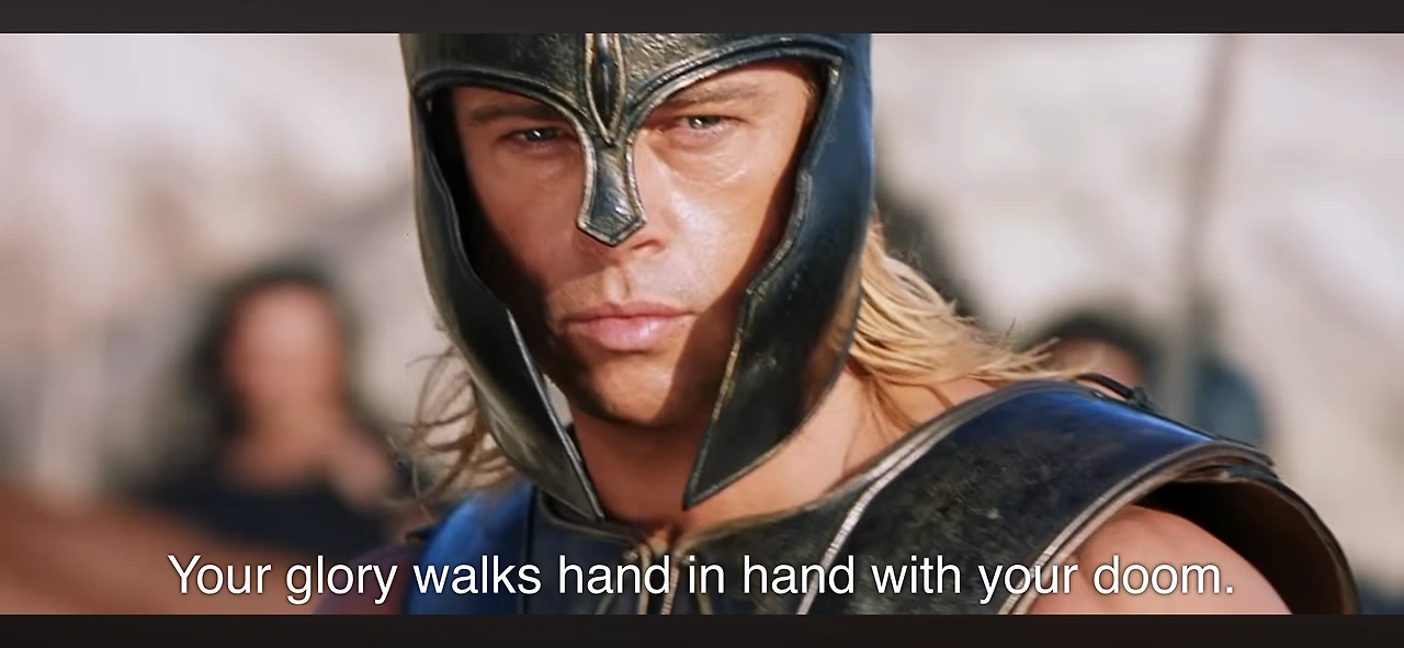 그는 전쟁에 나가 헥토르를 죽이면 그 역시 죽게 될 것이란 신탁을 받습니다. 다만 그 죽음 이후 이름이 길이 남을 것이라는 첨언이 있었죠. 엄마 테티스는 당연히 전쟁에 나가려는 아들을 말렸지만, 아킬레우스는 '살아남아 웃음거리가 되고 대지의 짐이 되느니 (친구를 죽인 헥토르에) 복수하고 죽고 싶다 Let me die forthwith'고 했다 합니다.