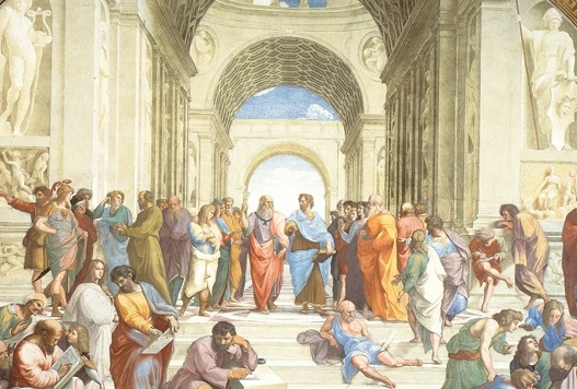 플라톤은 이상주의자였다고 들었습니다. 그의 행적에 이상주의자의 시선이 반영된 것이죠. <변론>에서 보이는 말과 행동은 소크라테스의 탈을 쓴 플라톤일지도 몰라요. 소크라테스가 죽고 약 1500년이 흐른 후, 라파엘로가 그린 '아테네 학당'이란 그림에서 하늘을 가리키던 그의 포즈가 새삼스럽습니다.