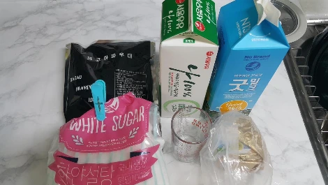 생활감 넘치는 재료를 준비했다. 집에 없던 코코아 파우더를 주문하고 기다리는데 며칠이 걸렸다. 집에 계량컵이 있어 다행이다. 디자인이 마음에 들어 샀을 뿐인데 곳곳에서 요긴하게 쓰고 있다.