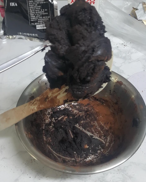 초콜릿을 먹겠다는 마음과, 이미 저질렀으니 어쩔 수 없다는 마음으로 양손에 하나씩 잡는다. 중간에 견디다 못해 우유를 조금 섞고 살짝 찍어서 맛을 보았다. 음, 맛이 없다.
