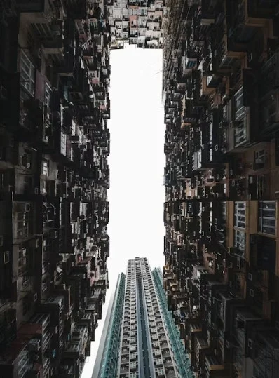 치솟는 아파트들이 하늘을 차지한 채, 바벨탑처럼 겹겹이 쌓여 올라갑니다.