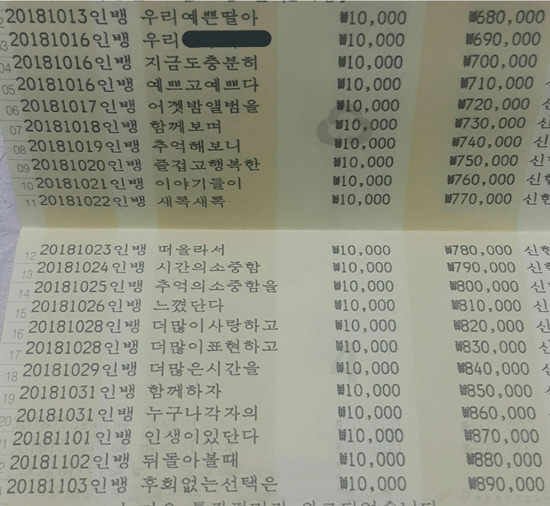 (입금자명에 적힌 엄마의 메시지)