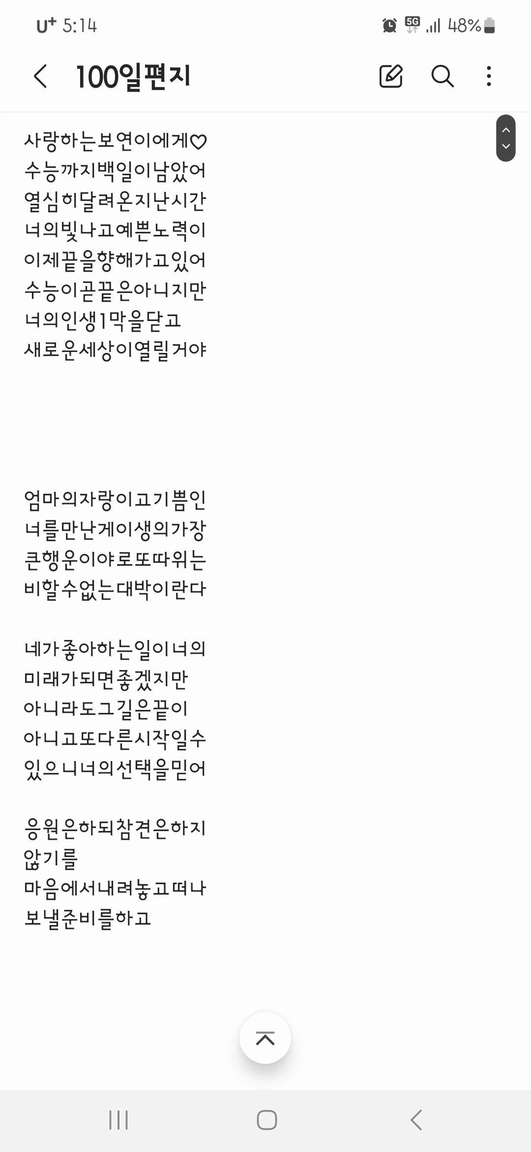 수능 전 100일 동안 매일매일 딸에게 보낸!